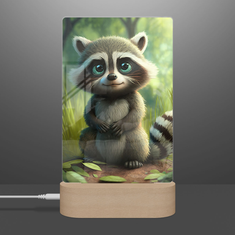 Součástí balení je akrylové sklo dle výběru, dřevěný RGB LED stojánek a napájecí USB kabel.