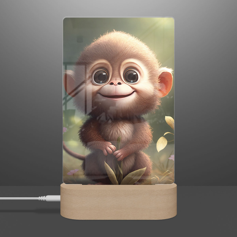 Součástí balení je akrylové sklo dle výběru, dřevěný RGB LED stojánek a napájecí USB kabel.
