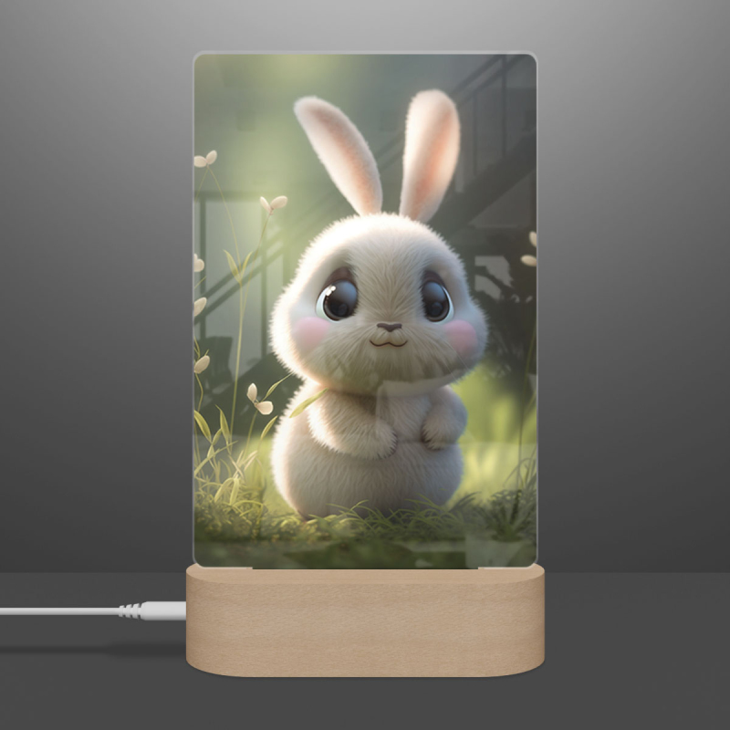 Součástí balení je akrylové sklo dle výběru, dřevěný RGB LED stojánek a napájecí USB kabel.