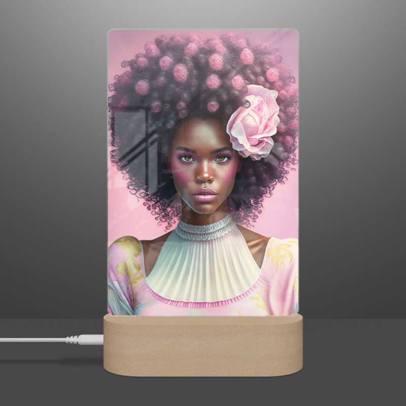 Součástí balení je akrylové sklo dle výběru, dřevěný RGB LED stojánek a napájecí USB kabel.