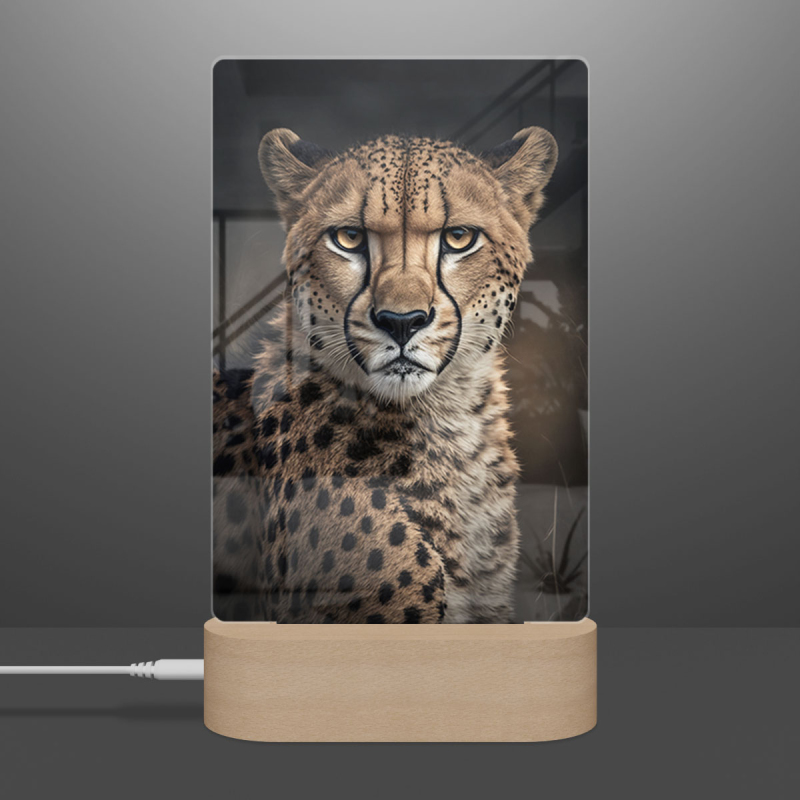 Součástí balení je akrylové sklo dle výběru, dřevěný RGB LED stojánek a napájecí USB kabel.