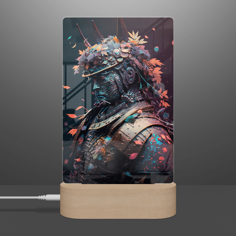 Součástí balení je akrylové sklo dle výběru, dřevěný RGB LED stojánek a napájecí USB kabel.