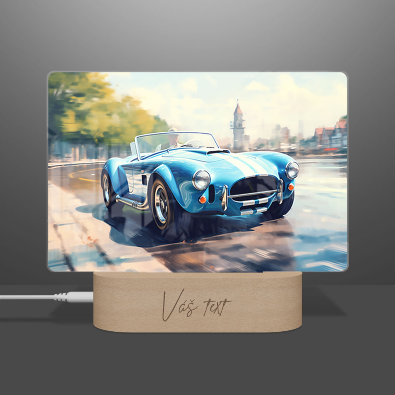 Součástí balení je akrylové sklo dle výběru, dřevěný RGB LED stojánek a napájecí USB kabel.