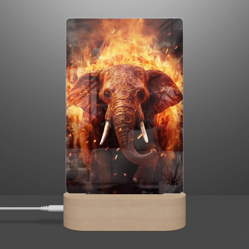 Součástí balení je akrylové sklo dle výběru, dřevěný RGB LED stojánek a napájecí USB kabel.