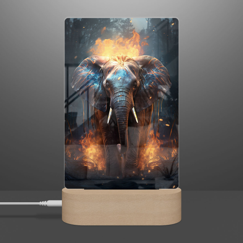 Součástí balení je akrylové sklo dle výběru, dřevěný RGB LED stojánek a napájecí USB kabel.