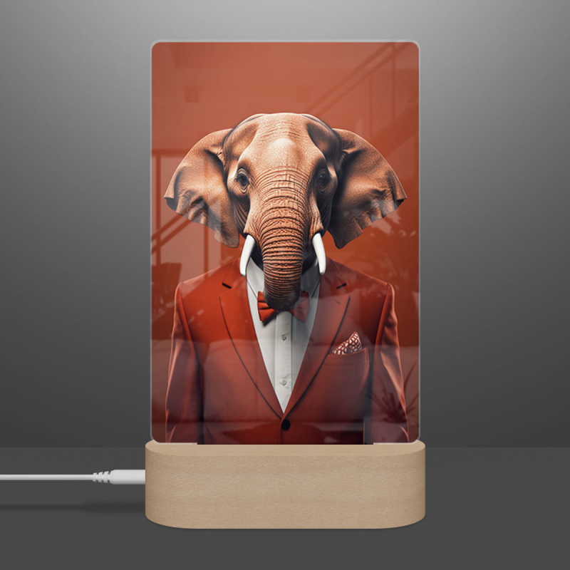 Součástí balení je akrylové sklo dle výběru, dřevěný RGB LED stojánek a napájecí USB kabel.