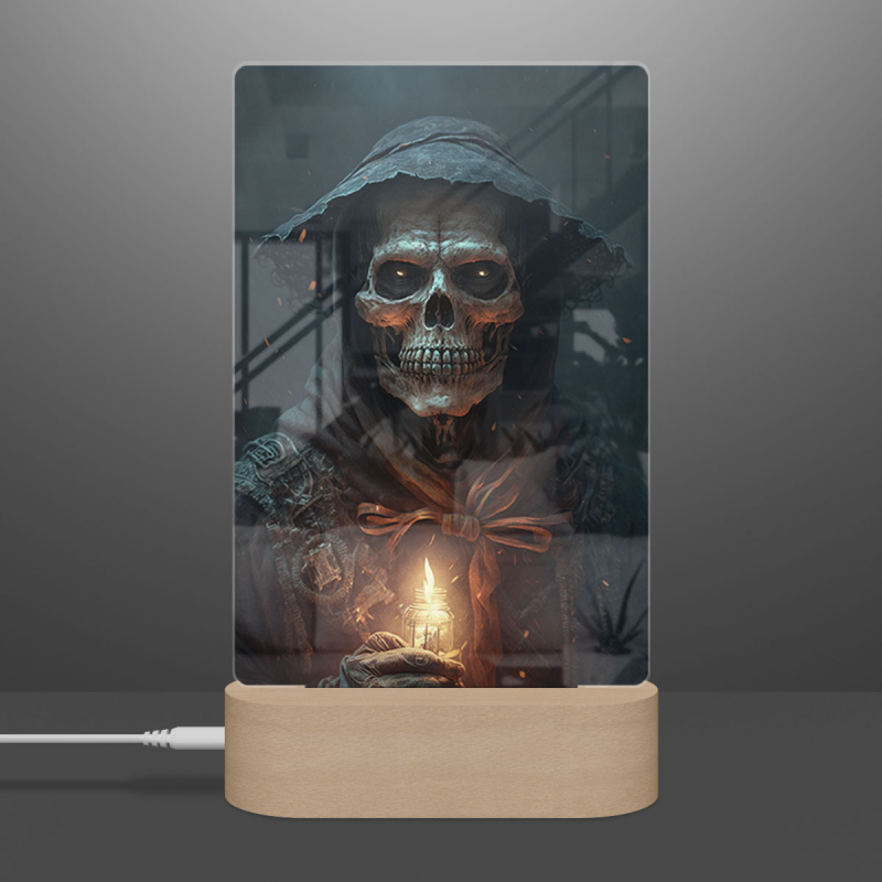 Součástí balení je akrylové sklo dle výběru, dřevěný RGB LED stojánek a napájecí USB kabel.