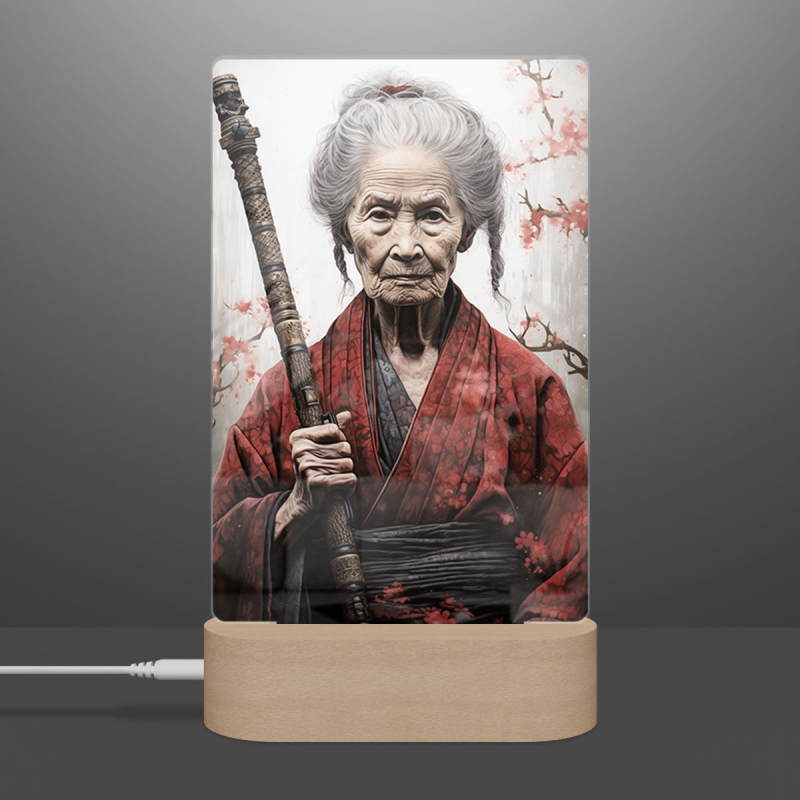 Lampa stará žena samuraj s mečem