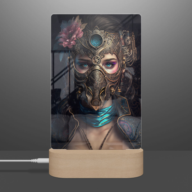 Součástí balení je akrylové sklo dle výběru, dřevěný RGB LED stojánek a napájecí USB kabel.