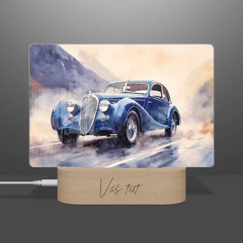 Součástí balení je akrylové sklo dle výběru, dřevěný RGB LED stojánek a napájecí USB kabel.