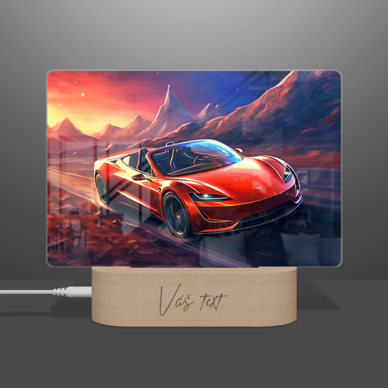 Součástí balení je akrylové sklo dle výběru, dřevěný RGB LED stojánek a napájecí USB kabel.