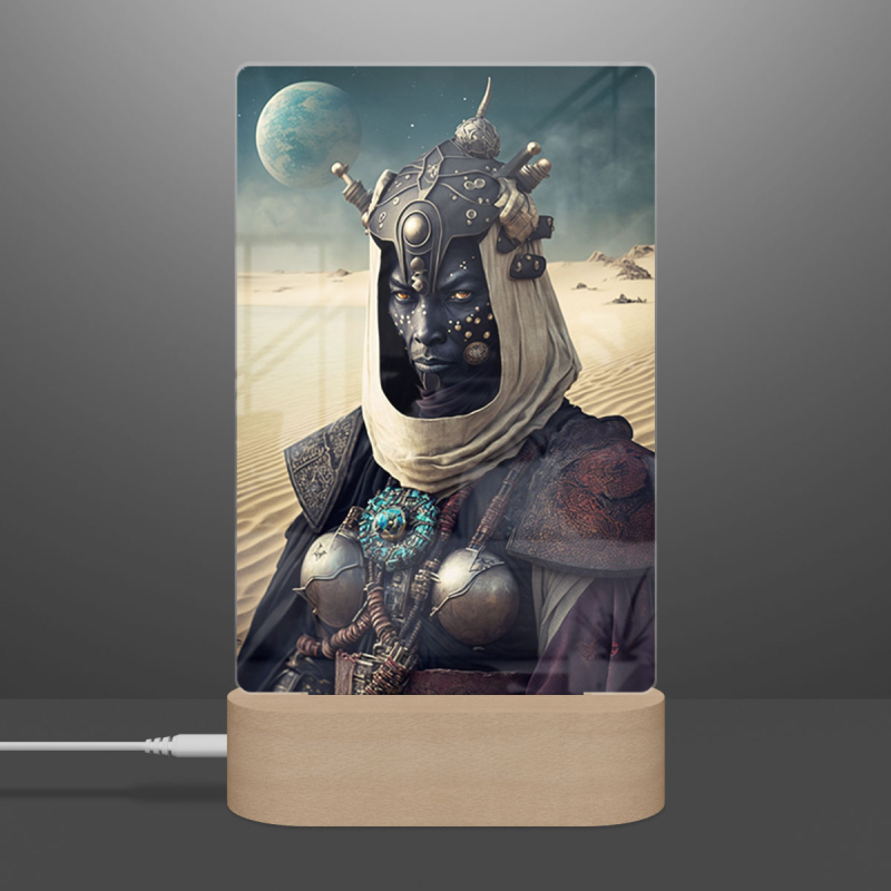 Součástí balení je akrylové sklo dle výběru, dřevěný RGB LED stojánek a napájecí USB kabel.