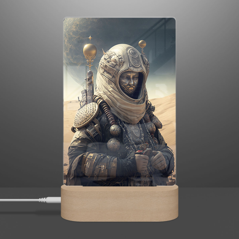 Součástí balení je akrylové sklo dle výběru, dřevěný RGB LED stojánek a napájecí USB kabel.
