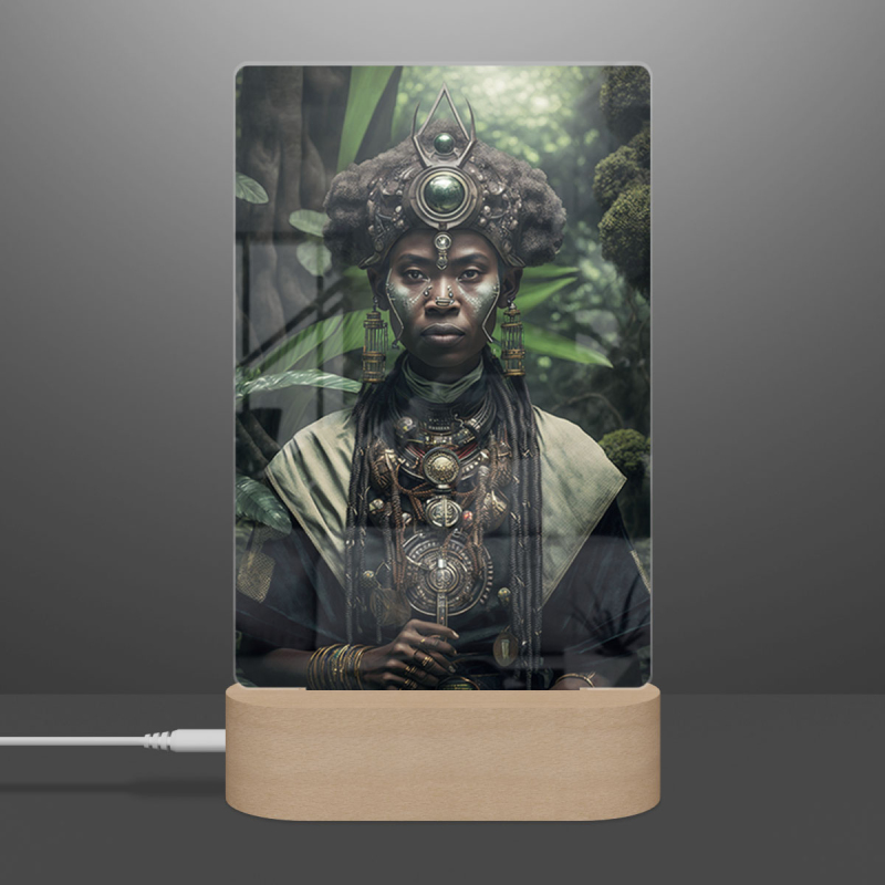 Součástí balení je akrylové sklo dle výběru, dřevěný RGB LED stojánek a napájecí USB kabel.