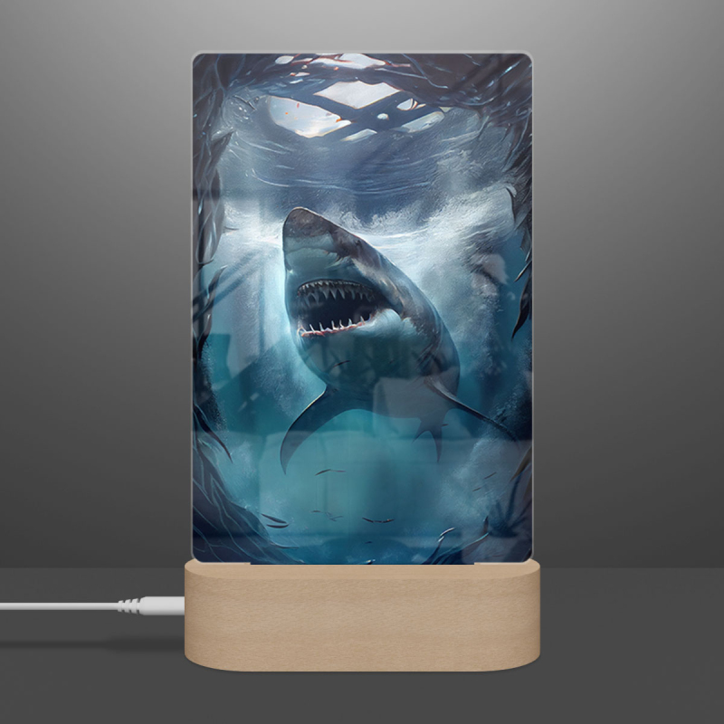 Součástí balení je akrylové sklo dle výběru, dřevěný RGB LED stojánek a napájecí USB kabel.