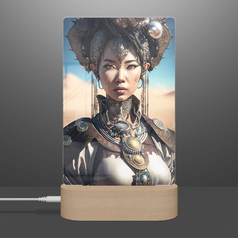 Součástí balení je akrylové sklo dle výběru, dřevěný RGB LED stojánek a napájecí USB kabel.