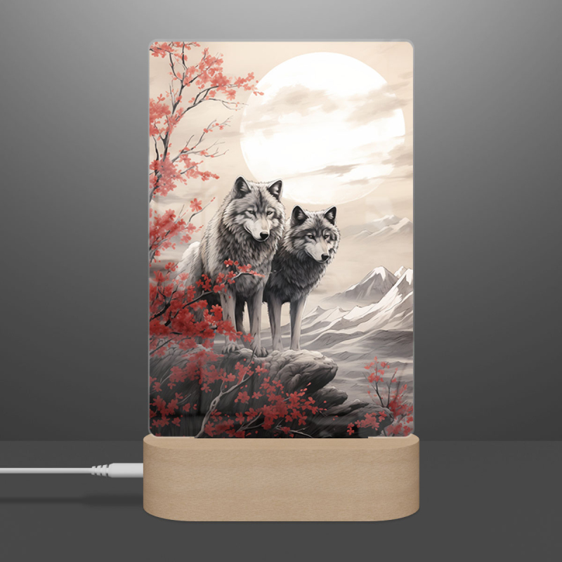 Součástí balení je akrylové sklo dle výběru, dřevěný RGB LED stojánek a napájecí USB kabel.