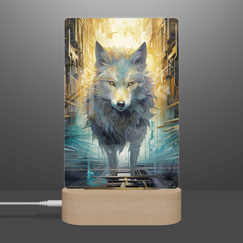 Součástí balení je akrylové sklo dle výběru, dřevěný RGB LED stojánek a napájecí USB kabel.