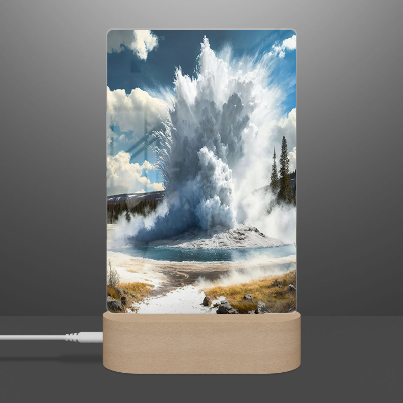 Součástí balení je akrylové sklo dle výběru, dřevěný RGB LED stojánek a napájecí USB kabel.