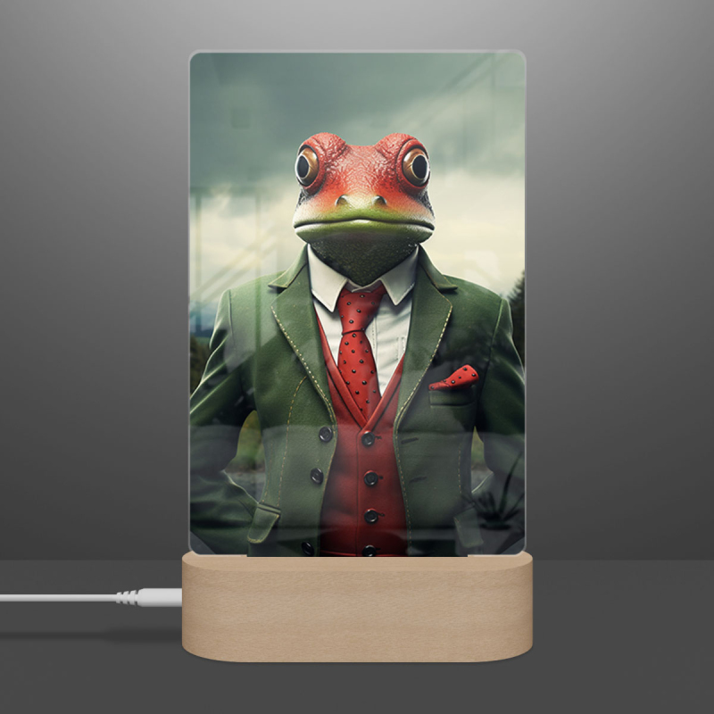 Lampa žába v obleku