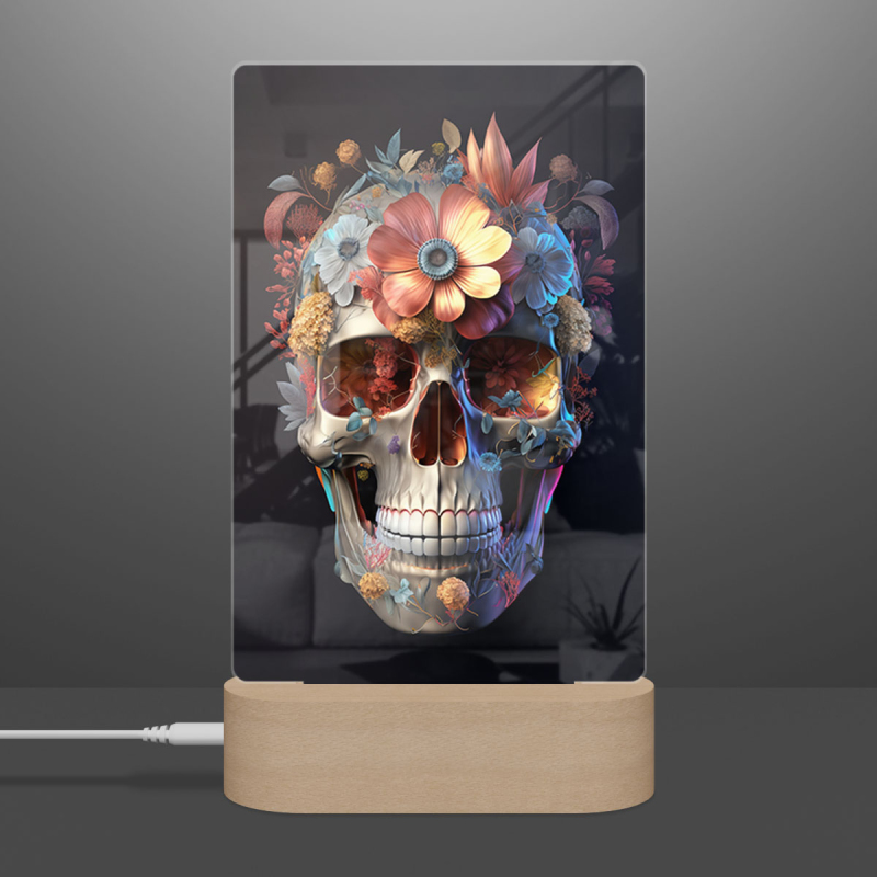 Součástí balení je akrylové sklo dle výběru, dřevěný RGB LED stojánek a napájecí USB kabel.