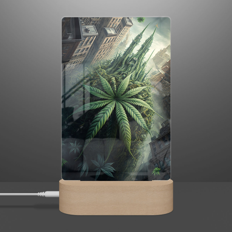 Součástí balení je akrylové sklo dle výběru, dřevěný RGB LED stojánek a napájecí USB kabel.