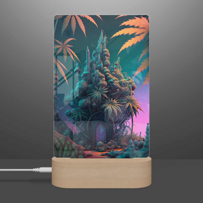 Součástí balení je akrylové sklo dle výběru, dřevěný RGB LED stojánek a napájecí USB kabel.