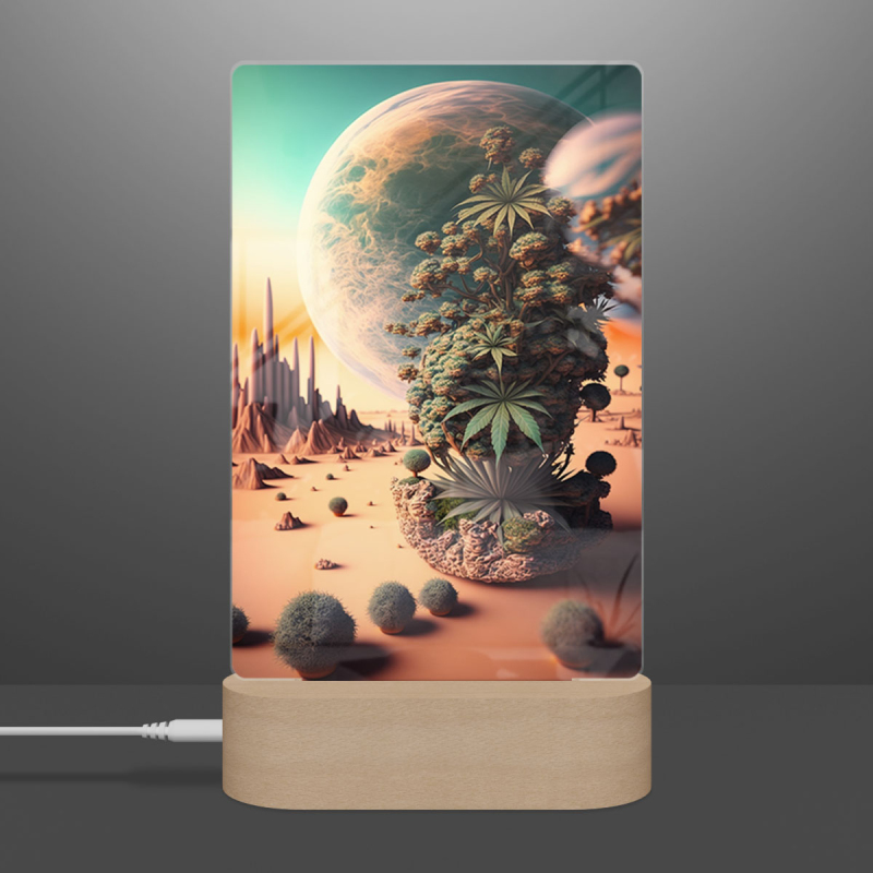 Součástí balení je akrylové sklo dle výběru, dřevěný RGB LED stojánek a napájecí USB kabel.