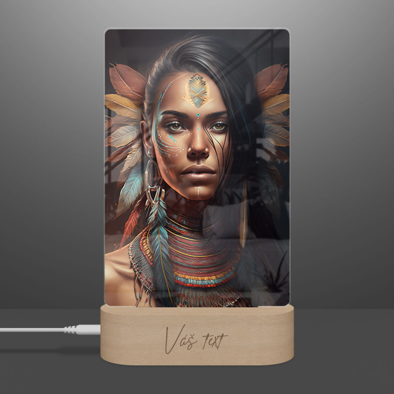Součástí balení je akrylové sklo dle výběru, dřevěný RGB LED stojánek a napájecí USB kabel.