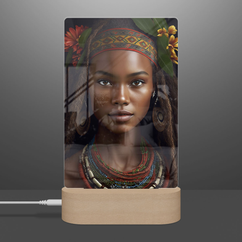 Součástí balení je akrylové sklo dle výběru, dřevěný RGB LED stojánek a napájecí USB kabel.