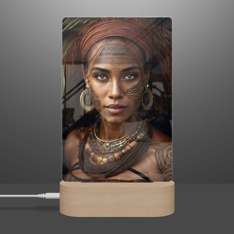 Součástí balení je akrylové sklo dle výběru, dřevěný RGB LED stojánek a napájecí USB kabel.