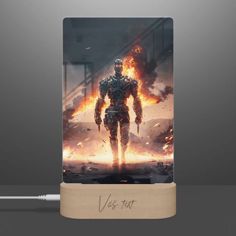 Součástí balení je akrylové sklo dle výběru, dřevěný RGB LED stojánek a napájecí USB kabel.