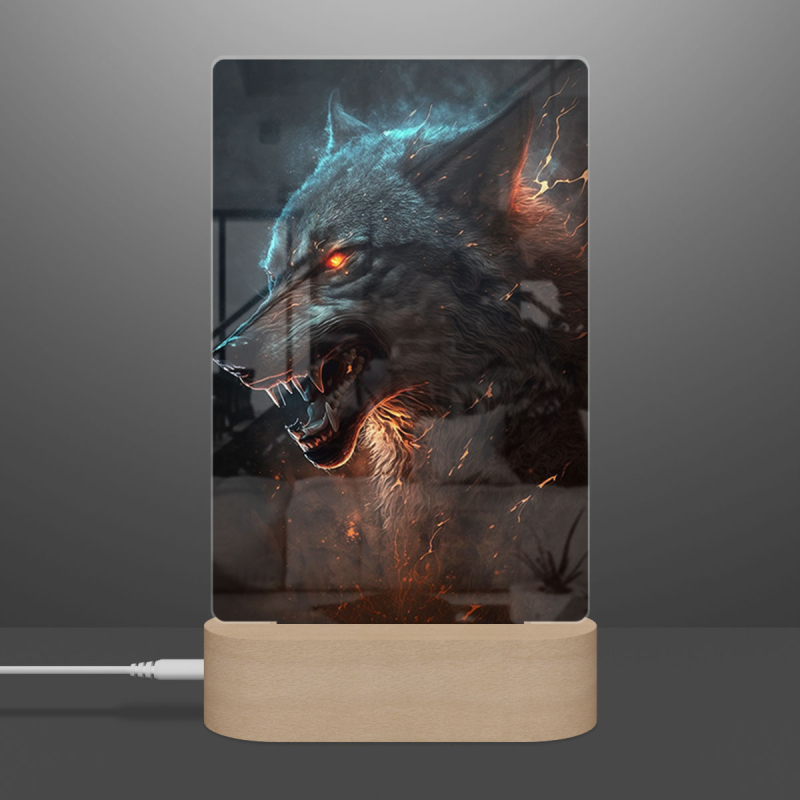 Součástí balení je akrylové sklo dle výběru, dřevěný RGB LED stojánek a napájecí USB kabel.