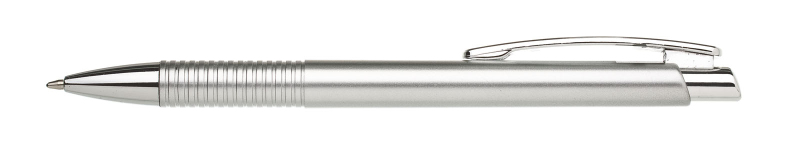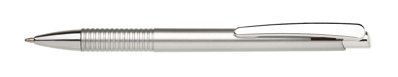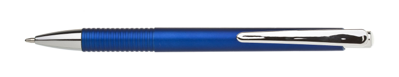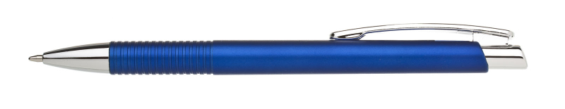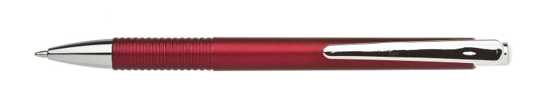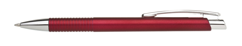Plastové, kuličkové pero LASTI má červené, metalické tělo s rýhovaným úchopem a pochromovanou špičkou, klipem a cvakátkem. Náplň X 20- 10,6 cm, modře píšící.