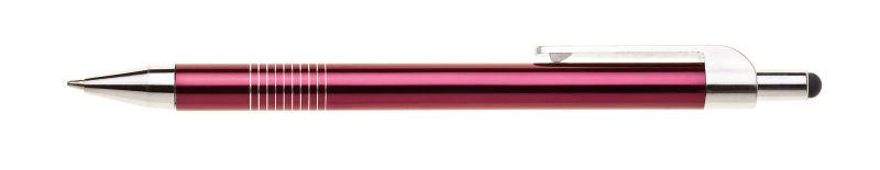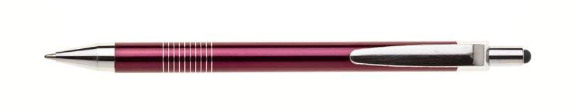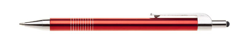 Červená kovová propiska s lesklým povrchem a touch koncem