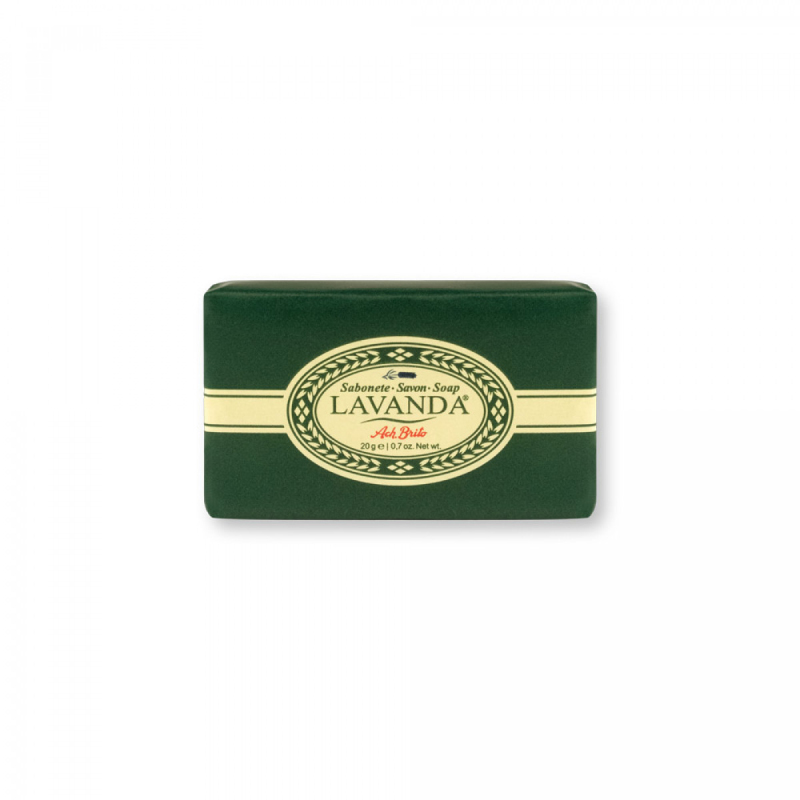 Mýdlo vyrobené na rostlinném mýdlovém základě a vůní levandule, s jemnou texturou, která zanechává pokožku provoněnou. Jeho malý formát je ideální pro nošení v tašce do tělocvičny nebo na cesty. Tradičně vyráběné v Portugalsku. Kapacita 20 g. Klasické balení, které si zachovává původní design, se zeleným pozadím zdobeným drobnou grafikou představující květy levandule. 59 x 34 x 10 mm