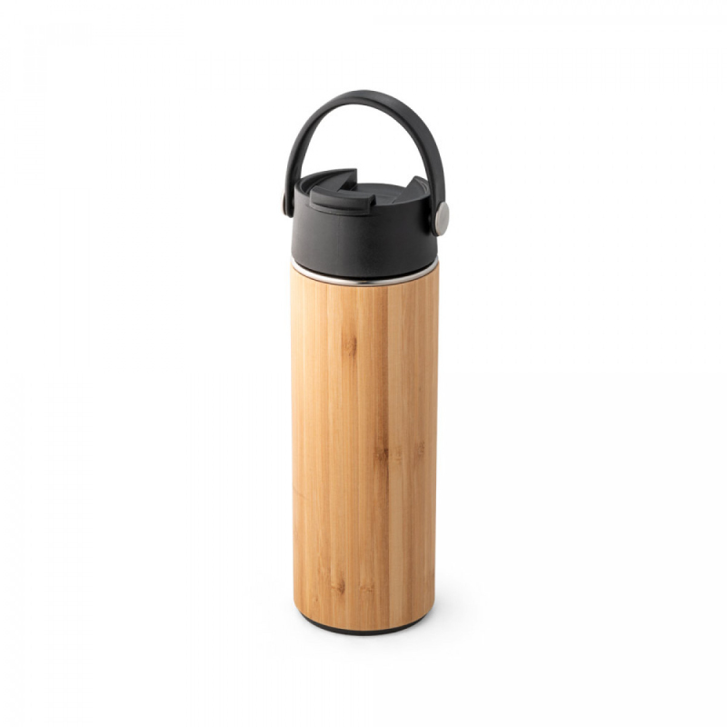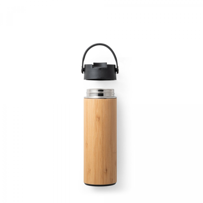Bambusová a nerezová láhev a PP víko, dvouplášťové tělo a vakuová izolace. Kapacita až 440 ml. Dodáváno v dárkové krabičce z kraftového papíru. ø70 x 222 mm
