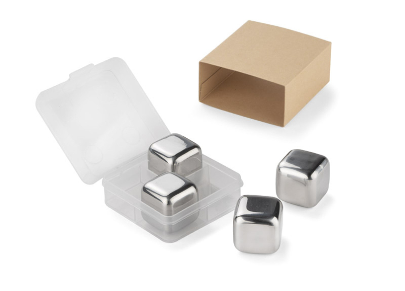 Chladící kostky na nápoje jsou vyrobeny z nerezavé oceli vyšší kvality and zabaleny v praktickém plastovém pouzdře. Set obsahuje 4 kostky, které by měly být v mrazáku minimálně po dobu 4 hodin, aby se zchladily na požadovanou teplotu, a pak vložily do sklenice s nápojem. Výborná vychytávka nahrazující tradiční kostky ledu, jelikož se voda nesmíchá s nápojem