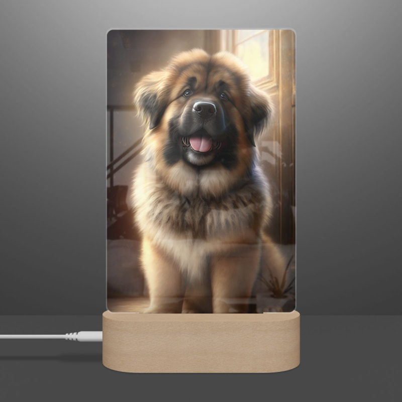 Součástí balení je akrylové sklo dle výběru, dřevěný RGB LED stojánek a napájecí USB kabel.