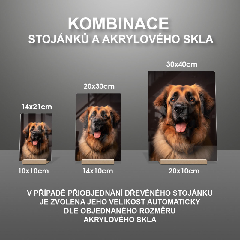 V případě přiobjednání dřevěného stojánku je zvolena jeho velikost automaticky dle objednaného rozměru akrylového skla viz produktové foto.