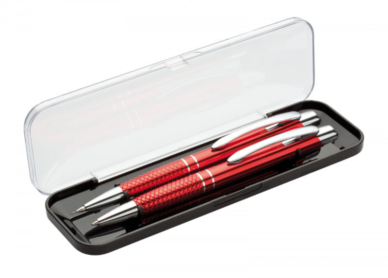 Sada LESINA je vyrobená z hliníku, má červené tělo se stříbrnými doplňky, dodáváno v průhledném plastovém boxu.