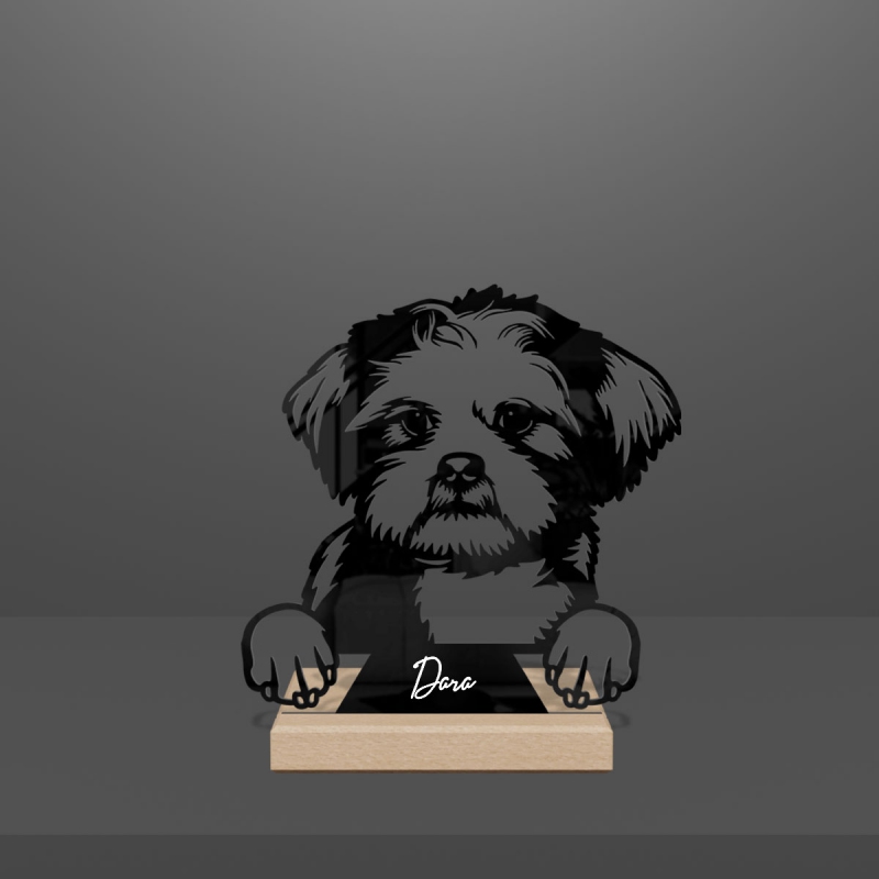 Tato interiérová dekorace je ideální pro všechny milovníky zvířat a každého, kdo má doma svého čtyřnohého miláčka. Vyberte plemeno svého pejska, vyplňte jeho jméno a udělejte si radost krásnou dekorací v podobě Vašeho pejska. Motiv je vyroben z akrylového materiálu, který je velmi odolný. Tuto dekoraci lze použít pro různé interiéry, jako obývací pokoje, kanceláře nebo i dětské pokoje. Zároveň se jedná o originální dárek pro všechny, kteří sdílí své srdce se svým čtyřnohým miláčkem.