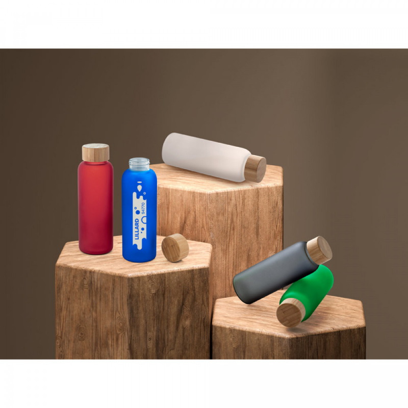 Láhev z matného borosilikátového skla s bambusovým víkem a objemem až 500 ml. Dodáváno v krabici z craftového papíru.ø65 x 190 mm