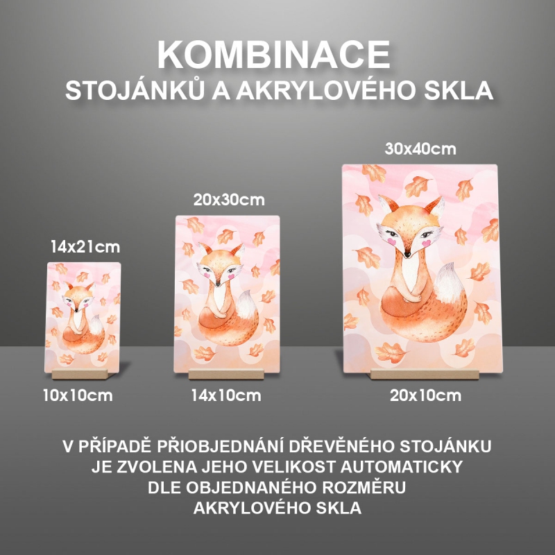 V případě přiobjednání dřevěného stojánku je zvolena jeho velikost automaticky dle objednaného rozměru akrylového skla viz produktové foto.