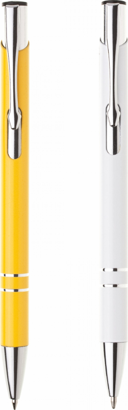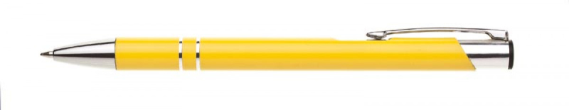 LOBIA je další varinta oblíbené propisky, liší se lakovaným tělem v barvách SOLID. Žluté tělo se dvěma stříbrnými proužky a chromovými doplňky. Laser na této tužce vychází šedivě. Velkoobsahová modrá náplň.