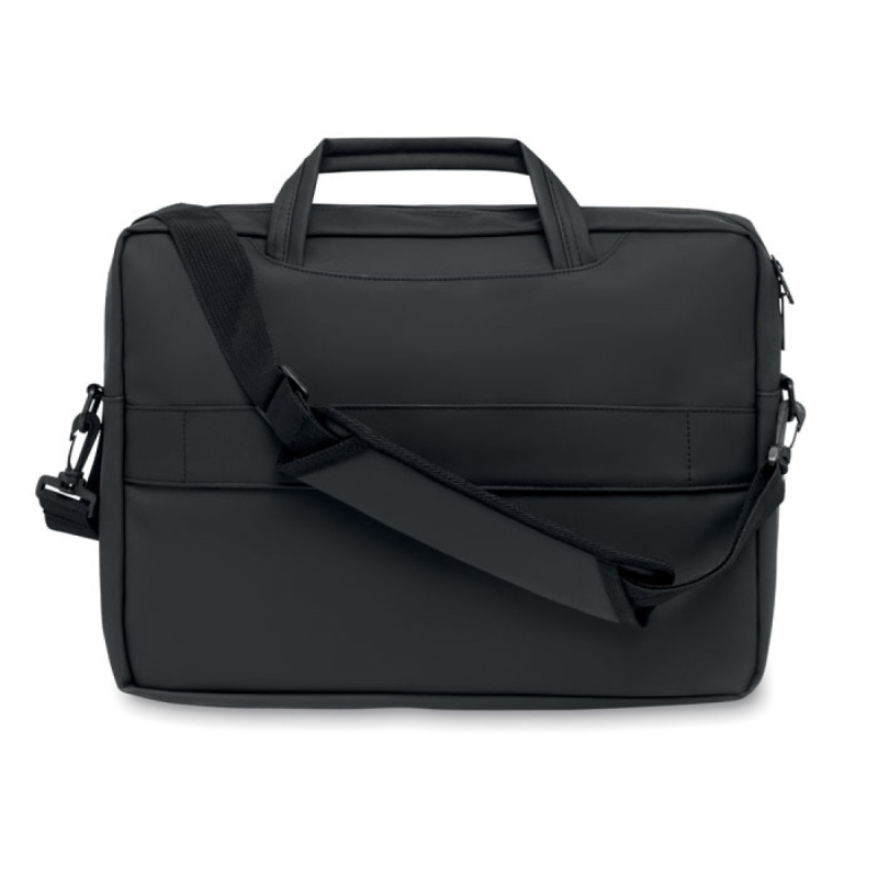 Taška na dokumenty a 15palcový notebook. Polstrovaná přihrádka na notebook a přední kapsa na zip s několika přihrádkami. Polyesterová podšívka 210D RPET. 2 rukojeti a jeden nastavitelný a odnímatelný ramenní popruh. Držák na vozík na zadní straně.