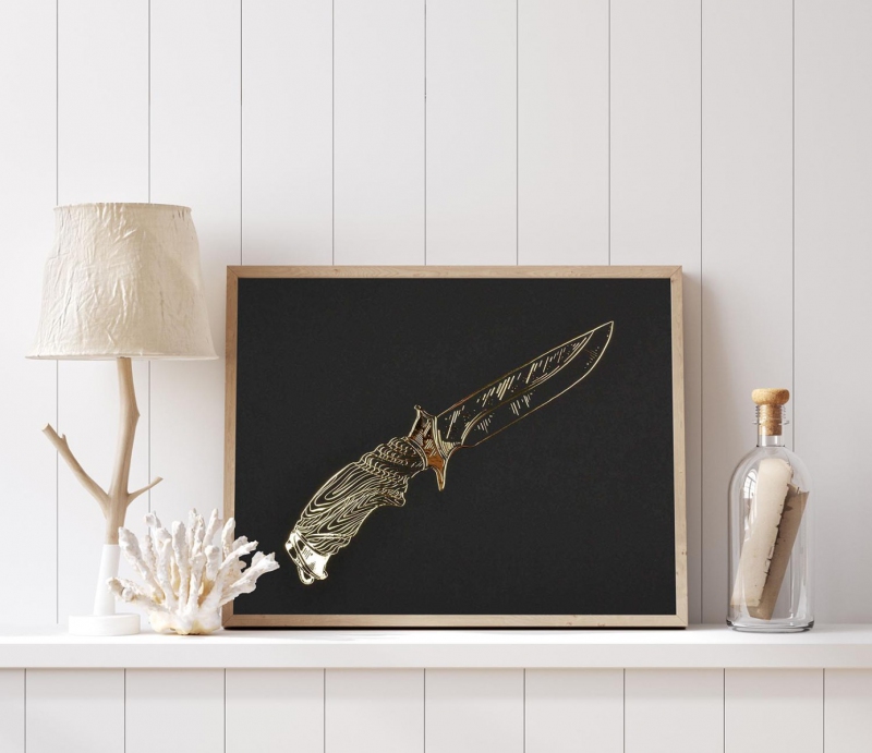 Lovecký Nůž 3D Zlatý Plakát