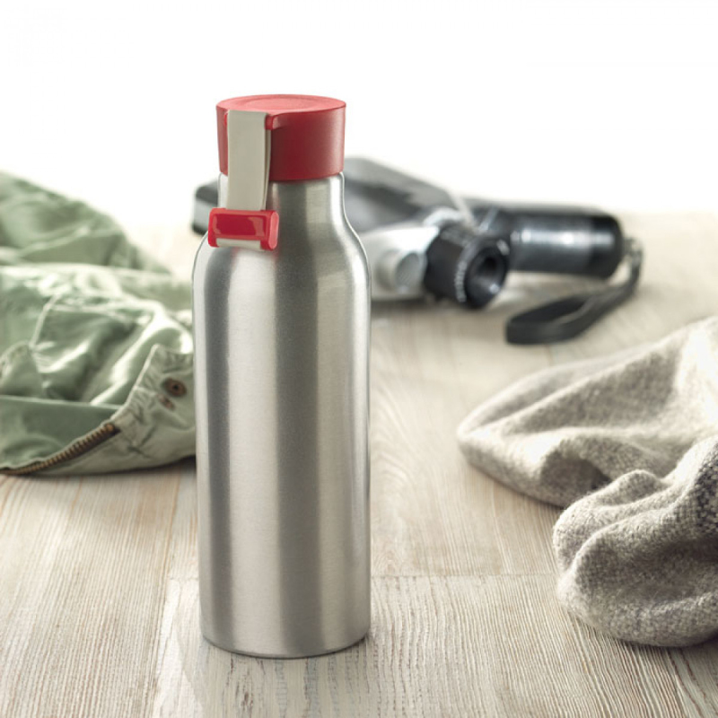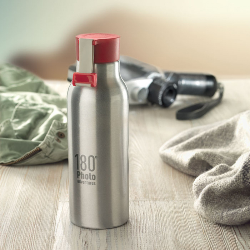 Hliníková lahev na pití jednoplášťová, 500 ml. S hliníkovým poutkem.
