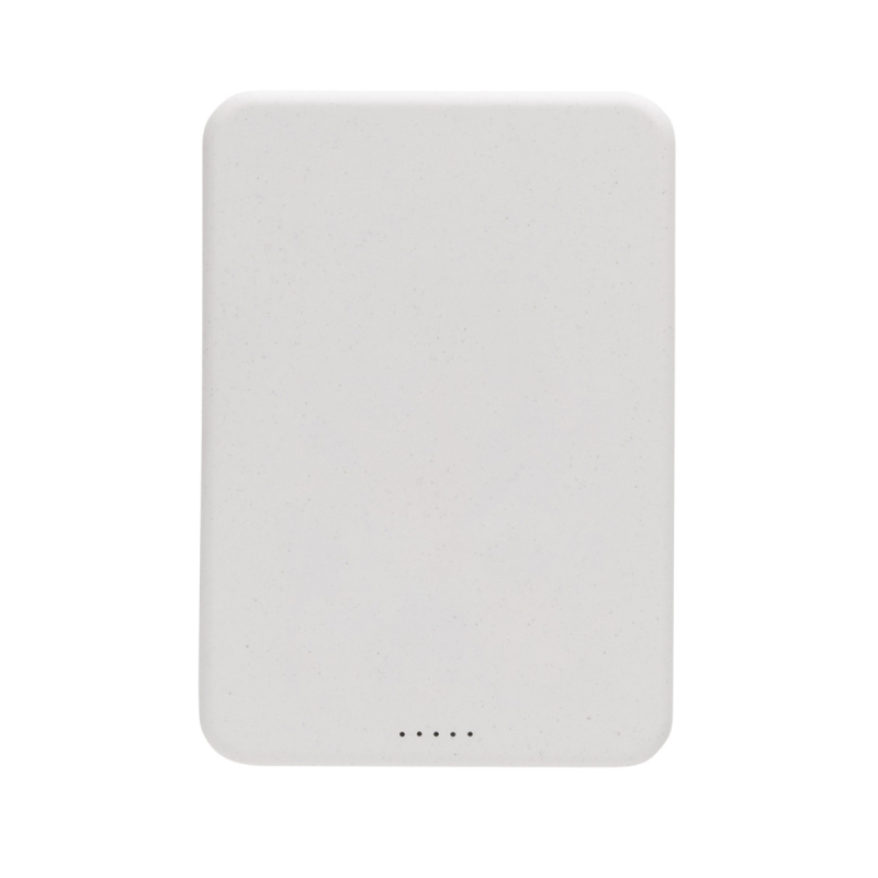 Kapesní powerbanka 5 000 mAh s magnetickým bezdrátovým nabíjením 5 W. Vyrobená z recyklovaného ABS plastu s RCS certifikací. RCS (Recycled Claim Standard) je globální standard, který umožňuje ověřit použití recyklovaného materiálu v produktu napříč celým dodavatelským řetězcem. Celkový podíl recyklátu dle váhy produktu: 20 %. Kvalitní lithium polymerová baterie řady A s kapacitou 5 000 mAh. Světelné indikátory stupně nabití. USB C vstup: 5V/2,4A. USB C výstup: 5V/2,4A, bezdrátový výstup: 5W. Včetně nabíjecího kabelu z recyklovaného TPE. Výrobek je kompletně bez PVC. Baleno v FSC kraftové dárkové krabičce.