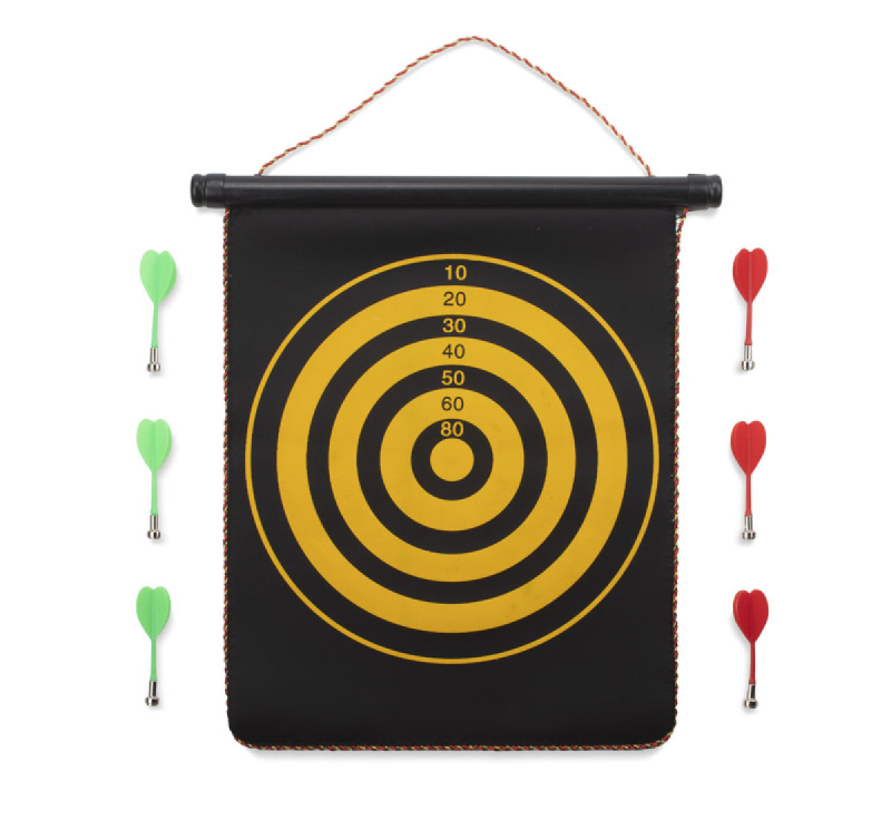 Magnetická šipka je dokonalým návrhem pro fanoušky hry se šipkami. Je vyroben z magnetického materiálu, díky kterému se šipky snadno přichytí k cíli. Díky tomu je hra zcela bezpečná. Štít je oboustranný. Má šňůrku, se kterou ji můžete pověsit kamkoli. Baleno v černé tubě spolu se šesti šipkami.